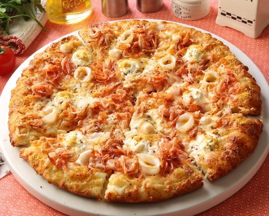 春限定の『ボッタルガと桜海老のシーフードピザ』は、春の味覚「桜海老」と濃厚な旨みが特徴のイタリアのカラスミ「ボッタルガ」を使った、桜色の見た目に、上質感のある美味しさが嬉しい本格シーフードピザです。イカや貝柱をトッピングし、ガーリックが香る特製ソースで仕上げています。