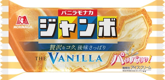 また、「バニラモナカジャンボ」は、パリパリッ食感のほんのり甘いモナカと、アイスクリームグレードのコクが楽しめるにも関わらず、後味がすっきりしているバニラアイスが一緒に楽しめる商品です。今回はその唯一無二の独自性を訴求するべく「THE VANILLA」と付したパッケージにリニューアルします。「ジャンボグループ」は今後もパリパリッ食感を追求し、お客様に笑顔をお届けしてまいります。