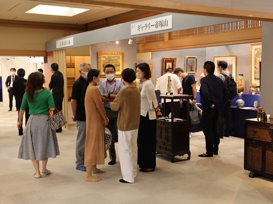 初出展10店を含む74店が出展、古美術、茶道具、刀剣から近現代美術まで展示・販売。