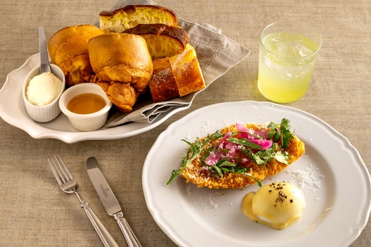 鶏ムネ肉のカツレツ ウフマヨ 1900円(おかわり自由の自家製パン3種、ドリンクバー付き)