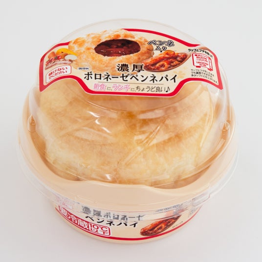 「濃厚ボロネーゼペンネパイ」は、チーズが溶け込んだ濃厚なミートソースに、ペンネが入ったポットパイです。