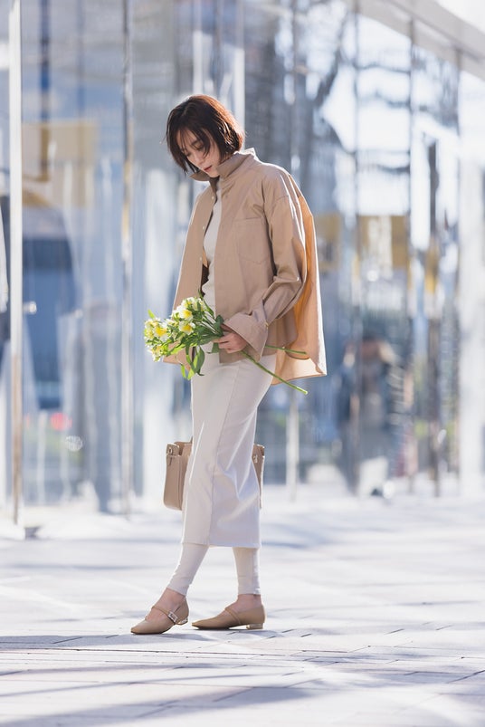 トレンドマテリアルを組み合わせて楽しむ前向きな姿勢を大切に。