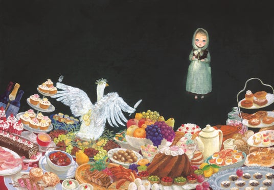 画家・絵本作家の町田尚子は、絵本の物語を大胆な構図と繊細なタッチで描くことで、その文章が生きる空間を表現しています。町田尚子の座右の銘は「隙あらば猫」。童話や遠野物語、怪談絵本など、様々な物語の中で猫を主人公として、時に脇役として登場させています。描かれた猫たちは、毛並みから仕草、表情まで緻密に表現され、猫と暮らす町田の観察眼の鋭さ、そして猫を慈しむ眼差しが感じられます。