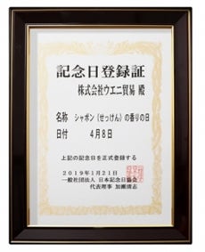 「アクア シャボン」を展開する株式会社ウエニ貿易は、お風呂好きな日本人が慣れ親しんでいる香りである「シャボンの香り」の更なる普及を目指し、「アクア シャボン」が10周年を迎えた2019年に『4月8日 シャボン(せっけん)の香りの日』を制定いたしました。