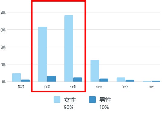 フォロワー数 約19,000人の内、女性25~44歳は約7割(約13,300人)と構成率が高い。
