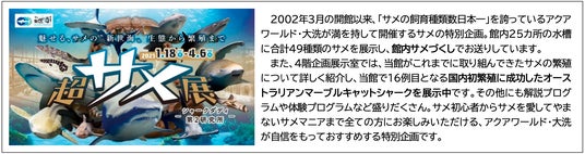サメ好きタレントとして有名なココリコ田中直樹さんと「サメの飼育種類数日本一」のアクアワールド・大洗がタッグを組んで特別企画「超サメ展~シャークダディ第2研究所~」を盛り上げます。