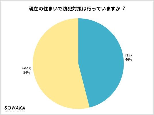 - 住まいの防犯対策を行っている方は半数未満の46%