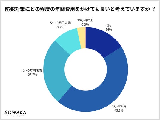 防犯対策にかけても良いと考える年間予算は1~1万円未満の方が45%超でした。