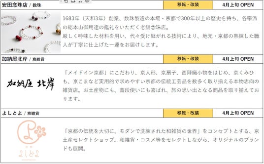 ・新たな商業ゾーンが誕生、京土産に最適な雑貨3店舗が移転オープン(2025年4月上旬)