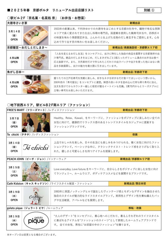 ※各店のオープン特典については、京都ポルタ公式HP内「新店&リニューアル」ページをご覧下さい。