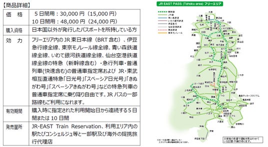 ・商品名:「JR EAST PASS(Tohoku area)10日間用」