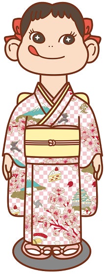 日本モチーフを取り入れた着物を着た店頭ペコちゃんイメージ