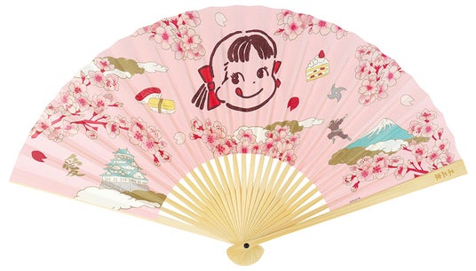 京都府京都市中京区にある扇子の老舗・白竹堂とのコラボレーション商品です。オリジナルデザインのペコちゃんと日本をイメージしたイラストが描かれており、咲き誇る桜が印象的な可愛らしい扇子です。