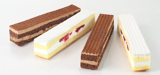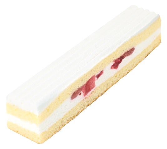 ショートケーキをイメージした可愛らしい見た目のスティックケーキです。練乳のやさしい甘さが特徴のミルキークリームとフリーズドライ苺を、沖縄県産和三盆糖(※)を使用したバター風味と苺風味の2種類のケーキ生地でサンドしました。常温でお召し上がりいただけます。