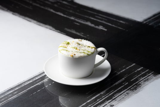 エスプレッソをベースにピスタチオソースとピスタチオフレーク、ホワイトガナッシュを散りばめたスペシャルラテです。