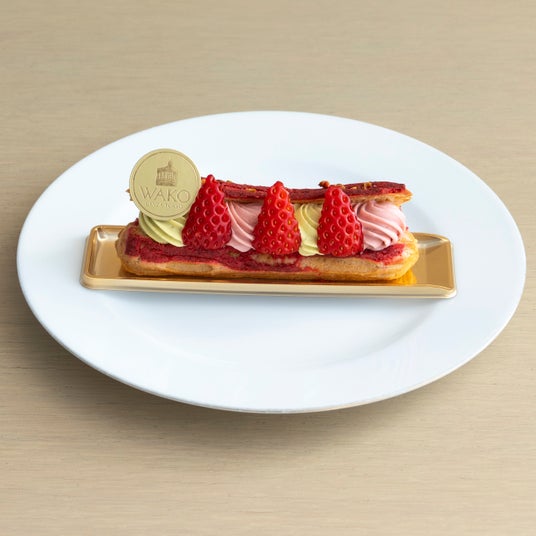 ピスタチオとルビーショコラのクリームをイチゴと交互に配した華やかな一品。ベリーの酸味でさっぱりとした口当たりが魅力です。