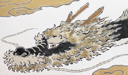 【小原龍絵画】 ナチュラルナノ研究グループ相模原市在住の画家・みやじまゆういちさんの原画に、小原地域の石からつくった 絵の具をつかってみんなで模様を描いた「小原龍絵画」を展示します。