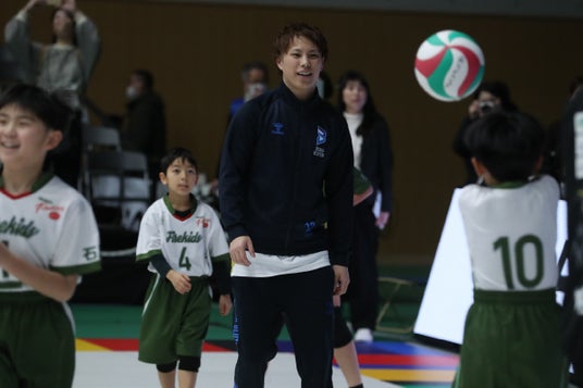 大阪ブルテオンの山内晶大選手が、「バレーボール教室では、子どもたちのために少しでもいい時間を一緒に過ごすことができたらという思いでした」と語ると、山本智大選手(大阪ブルテオン)は、「今もなお地震の影響で普通の生活を送れていない方や、苦しい思いをされている方がいると思いますが、僕たちはこれからもバレーボールを通じて勇気や元気を届けられるように精いっぱいプレーしたいと思います」と笑顔を見せた。