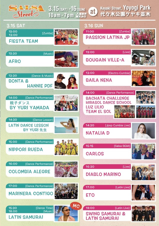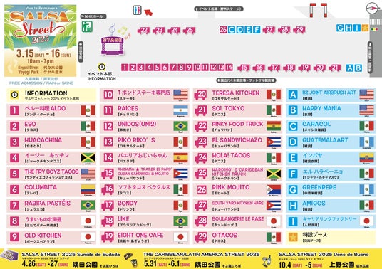 カリブ・ラテンアメリカストリート実行委員会(東京都目黒区 代表者 森淳一郎)は、3月15日(土)及び16日(日)に代々木公園で開催する「サルサストリート2025 春-Viva la Primavera-」の出店ブース、ステージプログラムを発表いたします。