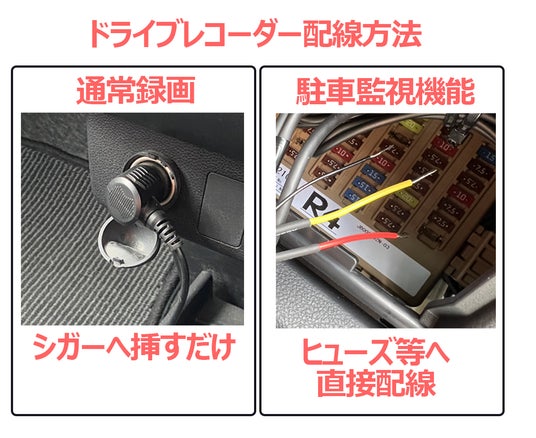 ドライブレコーダーの駐車監視用ケーブルはヒューズボックスへの直結配線など難しく手間のかかる配線方法でハードルが高い接続方法です。