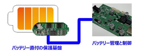 外傷に強い専用バッテリー、主要パーツを150℃の動作保証など
