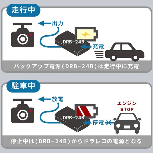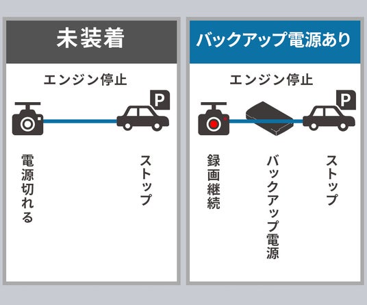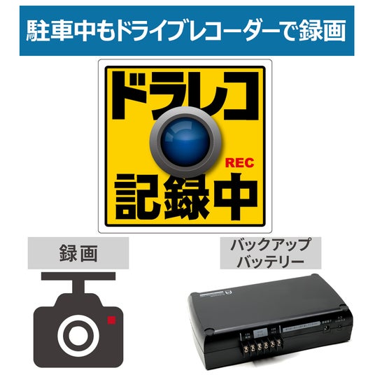 「駐車中もドライブレコーダーで監視。長時間のドライブレコーダーバックアップ電源」
