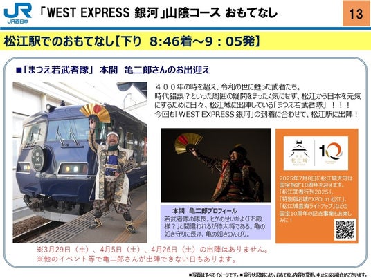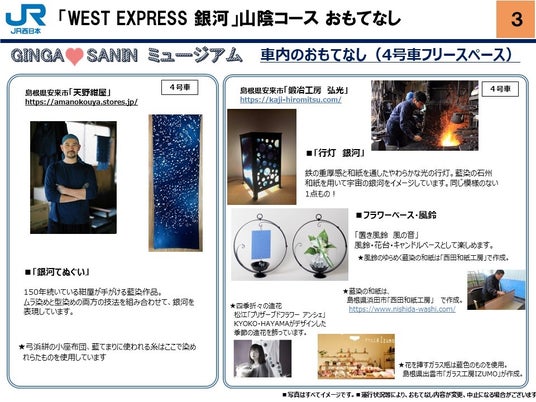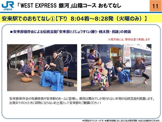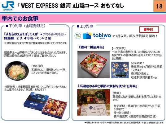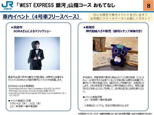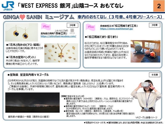 2025年3月~5月に運行する「WEST EXPRESS 銀河」山陰コースについて、おもてなしの内容等をお知らせします。