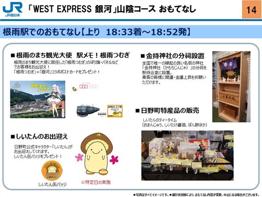 停車駅や車内にて山陰ならではのおもてなしをたくさんご用意しています。