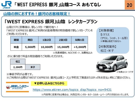 3.「WEST EXPRESS銀河 山陰レンタカープラン」について(20参照)