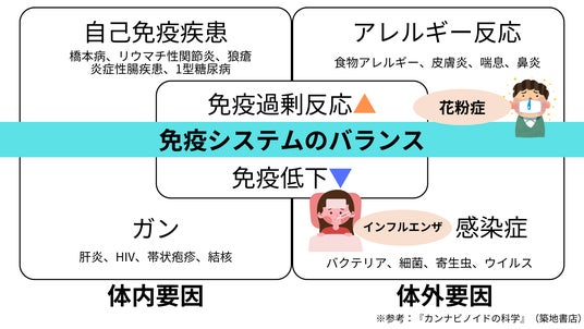 花粉症は、免疫系が花粉を有害な異物と誤認し、過剰な炎症反応を引き起こすことで発症します。ただ、免疫が低下すると風邪やインフルエンザなど感染症にかかってしまいます。過剰でも過少でも身体によくない。免疫のバランスを整えることが大事です。