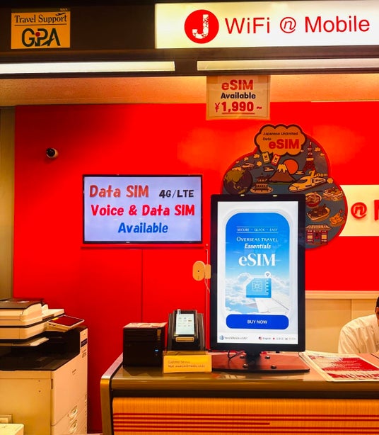 J WiFi & Mobile(R)成田T1カウンターへ設置。2025年中に海外プランに対応し全国展開予定。