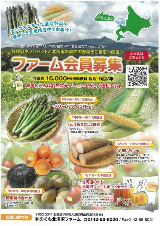 産地直送の野菜が楽しめる「ギフトセット」と「北海道の季節の野菜」を年5回発送いたします。ご自宅用、ギフト用にぜひご利用くださいませ。