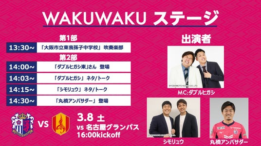 【セレッソ大阪】3/8(土)名古屋戦 WAKUWAKUステージ開催!ダブルヒガシ、シモリュウが登場!