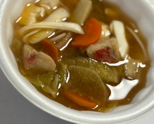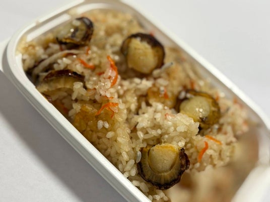 ここでしか味わえない極上の旨味が詰まった「金目鯛の鍋(スープ)」「ワカメの味噌汁」と「サラガイの炊き込みご飯」です。温かいスープが体の芯まで温めてくれます!