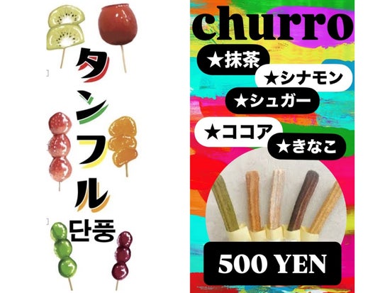(気仙沼ホルモン / 大島ゆず味噌おむすび / ポテト / チュロス / ピザ春巻き / タンフル / ホットレモネード / ホット蜂蜜ジンジャー)
