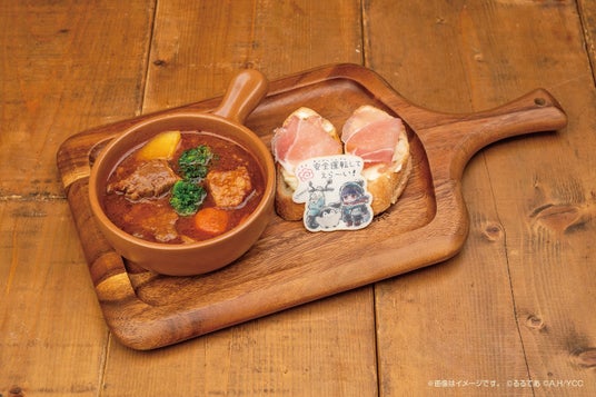 ゆるキャン△SEASON3第5話「焚き火と牛まつり」よりリンが作製していたビーフシチューと6話の生ハムとクリームチーズのカナッペをセットに。