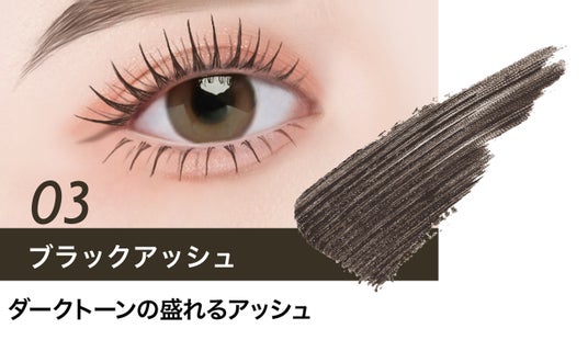 さらに無重力級の耐久カールキープで上向きまつげに仕上げる機能性はそのままにダークトーンの盛れるアッシュで目力をアップさせます。