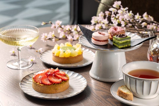 旬の味覚で彩るスイーツと特別に考案されたオリジナルドリンクのペアリングを楽しむ「スイートアフタヌーン」。3・4月は桜と抹茶をテーマに春を感じるスイーツを取り揃えました。季節限定のクロスタータには、桜フレーバーと香ばしいピスタチオクリームが、甘酸っぱいとちおとめと絶妙に調和する「とちおとめとピスタチオのクロスタータ」と、軽やかな抹茶ムースにみずみずしい八朔と日向夏を合わせた爽やかな「抹茶と八朔のクロスタータ」が登場。