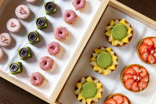 少しずつさまざまなフレーバーを楽しみたい方におすすめのパスティッチーニは、京都産抹茶を使用した濃厚な抹茶ガナッシュとベルガモットのパート・ド・フリュイ、ザクザクとしたカカオニブが織りなす異なる食感と美しい層のハーモニーを味わえる、シェフこだわりの「抹茶のオペラ」を含む3種をご用意いたしました。春ならではの「桜&抹茶スイートアフタヌーン」で、優雅な午後のひと時をお過ごしください。