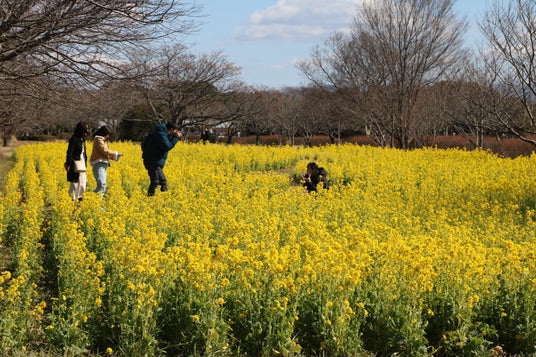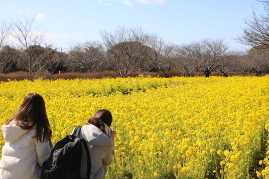 国営海の中道海浜公園(福岡県福岡市東区)では、スカイドルフィン近くにて15万本の菜の花が見頃を迎えています。見頃は3月下旬まで続く見込みです。青空に菜の花がよく映え、早春のうみなかを鮮やかに彩っています。フォトスポットとしても人気で、晴れた日には平日でも写真を撮る方が多くいらっしゃいます。菜の花畑の中に小径があるため、菜の花に囲まれて写真を撮ることができます。