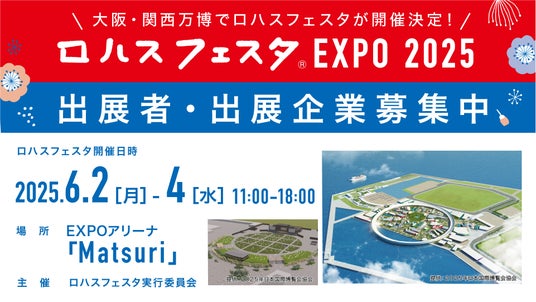 ロハスフェスタは、「人と地球にやさしいライフスタイル」をテーマに、2006年から大阪府吹田市の万博記念公園で始まったイベントです。この度、2025年6月2日(月)から4日(水)の3日間、大阪・関西万博内のEXPOアリーナ「Matsuri」にて、「ロハスフェスタ EXPO 2025」を開催いたします。