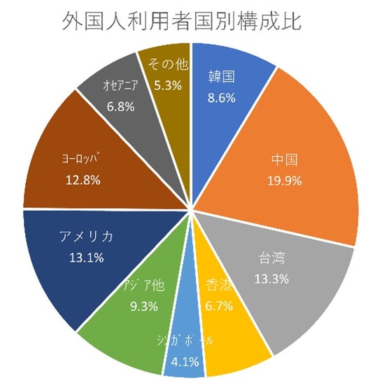 東急ステイでは、昨今のインバウンド需要の急増と宿泊客の属性の変化に伴い、世界のお客様をお迎えする機会が増えました。外国人宿泊比率は約70%を超え、図1のように、アジアのみならず、ヨーロッパ、北米、オセアニアなど幅広い地域からお客様を迎えております。