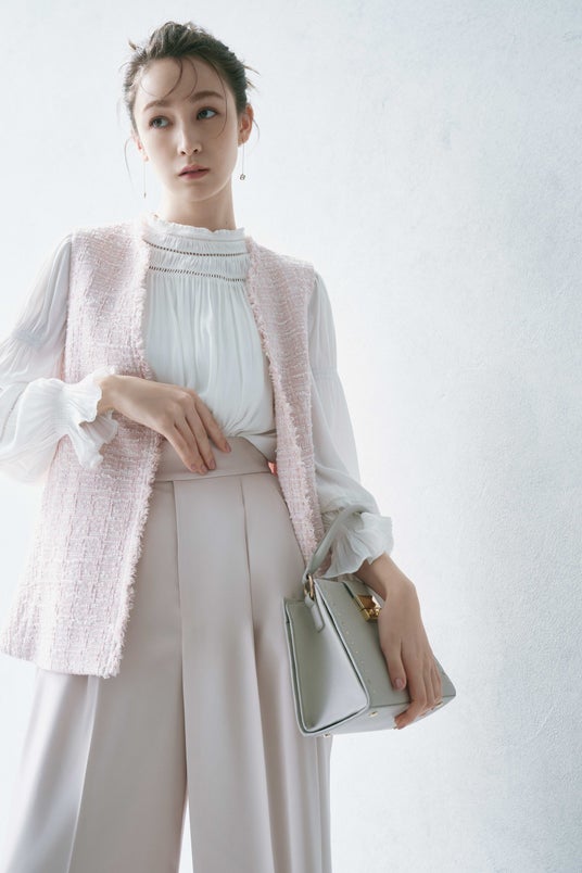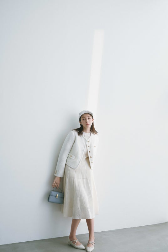 ツイード生地の持つクラス感を、柔らかな着心地や小物使いでもっと身近に。