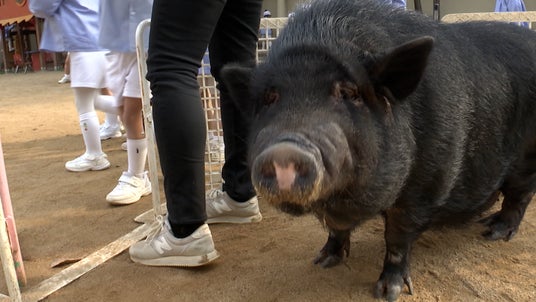 園児はミニブタやウサギの飼育に竹馬など、様々な遊びを自由に楽しめるんです。