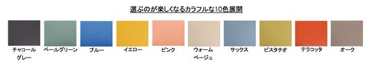 染色に独自の薬品を使っているため、柔らかいソフトな革でも繊維のしまりがあり、通常繊維の粗くなるお腹の部位のレザーでもしっかりと形をキープする加工を施しています。さらに、日本のタンナーでは出せない鮮やかな発色も魅力です。まるでフルーツのような多彩な10色のカラーバリエーションで、デザインには手に収まりやすい丸みのある曲線を取り入れています。