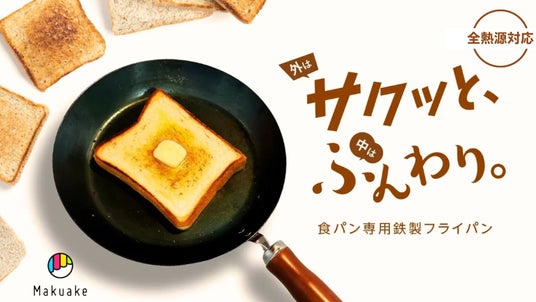 「Makuake」にて好評先行発売中!「100秒でプロ級トーストが完成!外サクッと中はふんわり。食パン専用鉄製フライパン」。