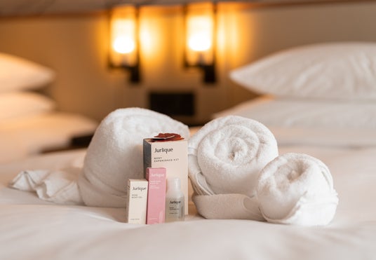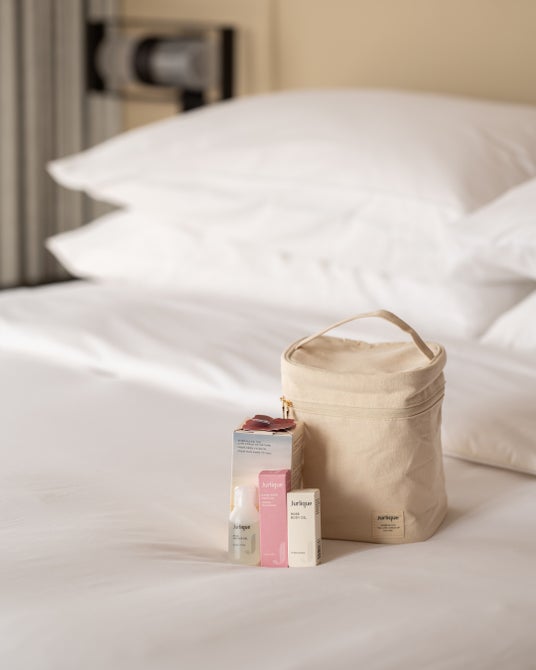 都会の喧騒を忘れ、寛ぎの客室でジュリークならではのローズの香りに包まれる、非日常のひとときをお過ごしください。人気のローズシリーズの中から、ローズ シャワージェル 30mL、ローズ ボディオイル 10mL、RO フェイスオイル 9mLがセットになったジュリークの限定アメニティで、優しいローズの香りに心身共に癒される時間を体感いただけます。