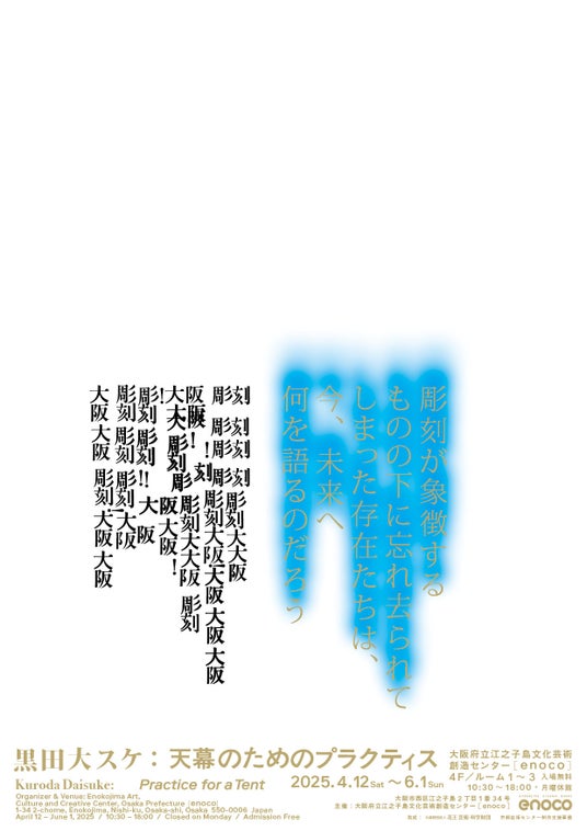 この度、大阪府立江之子島文化芸術創造センター[enoco]では、「黒田大スケ個展 天幕のためのプラクティス」を開催いたします。