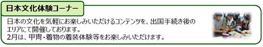 成田空港では、海外から日本を訪れるお客様に、日本の文化に触れて「また訪れたい」という思いを抱いていただくため、“日本ならでは”を体験いただけるイベントでおもてなししております。