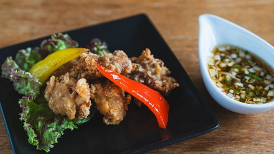 私の好物である油淋鶏を、お客様に美味しく味わっていただきたく、宮崎ブランド豚を使って仕上げました。さっぱり召し上がっていただくために油淋鶏ソースは酸味を少し強くしてバランスをとっています。ご飯のおかずとして最高ですし、ビールにもよく合います。